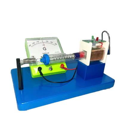 oNam châm vĩnh cửu hình trụ đường kính Ø15x30 mm được gắn trong một ống tròn bằng nhựa trong suốt Ø20 có thể kéo chuyển động qua lại trong lòng ống dây. Ống tròn có móc kéo tay tạo chuyển động qua lại của nam châm trong lòng ống dây đồng.